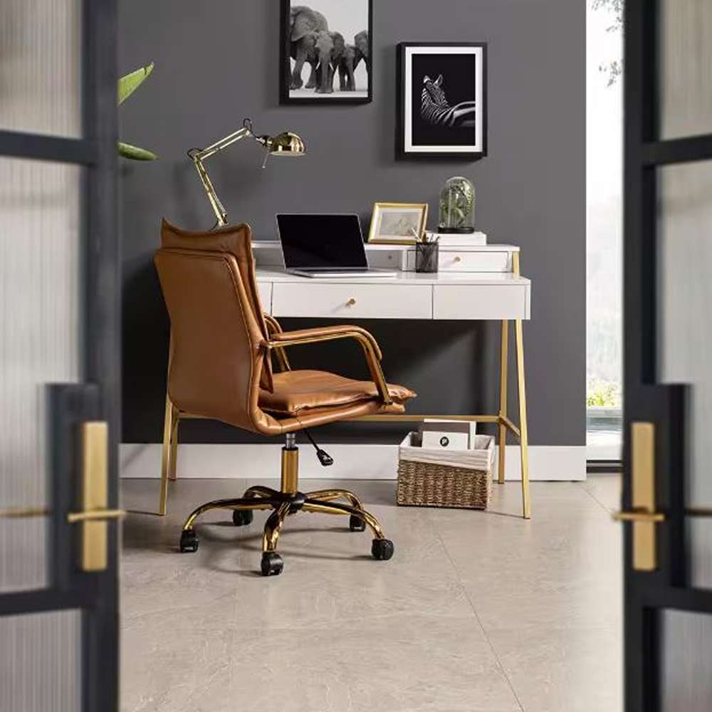 The chair is upholstered in high-quality polyurethane and filled with foam to offer the perfect balance of comfort and resilience. The subtle tufted detailing on the seat and back creates a sophisticated, tailored appearance, making it suitable for both modern and traditional office settings. This elegant design ensures that your workspace looks professional while providing the comfort needed for long periods of focus and productivity.